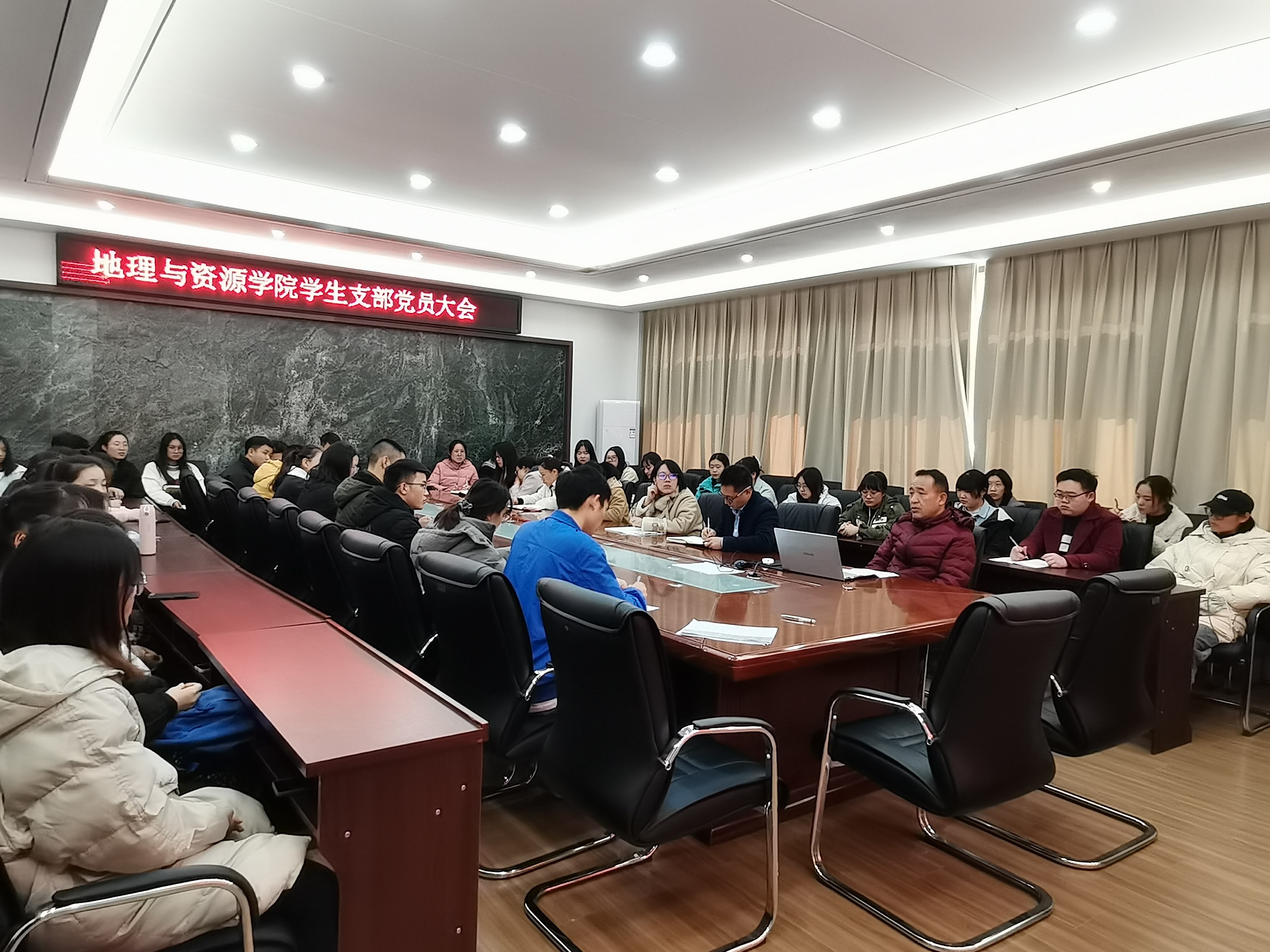 吴亚平介绍了两年来学生党员发展的基本情况,并强调党员要把理想信念内化于心,外化于行,即要把自身理想和一生不变的信仰内化于心,把共产党员的责任、担当、奉献和自我约束外化于行,对自己严格要求,做一名合格的党员。吴亚平接着宣布,随着永利集团3044官网欢迎您学生党员队伍的不断壮大,学校党委已经批准,通过这次全校性的支部改选,将永利集团3044官网欢迎您学生党支部析分为地理科学类学生党支部和资源环境类学生党支部。吴亚平要求,两个支部成立后,要进一步做好支部的组织建设,思想建设,政治建设,继续做好学生党员发展工作。吴亚平指出,两个支部党员要积极参与支部工作,开创学生党建工作的新局面。同时,两个学生支部工作要紧密协作,共同推进学生党建工作,把支部建设成坚强可靠的战斗堡垒。吴亚平还特别强调,学生党员要发挥带头作用,端正学风,在日常学习生活及党员活动参与过程中不断得到提升和成长,成为一名真正的合格的共产党员。罗绪强祝贺学院党员队伍不断壮大,不断成长,并表示两个学生支部工作目标性强,既突出学科专业特点,又便于开展工作突出学科优势,党员是共产党的一员,学生党员要把成绩搞好,本领搞强,严格要求约束自己,明确自己的义务,发挥标杆作用,为人民谋幸福,为民族谋复兴,成为新时代能担大任的国之栋梁。